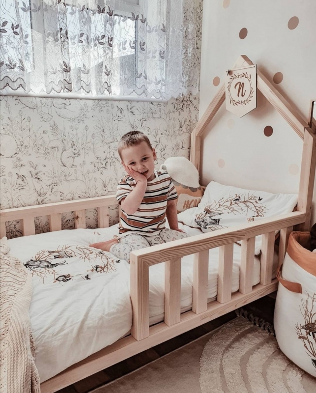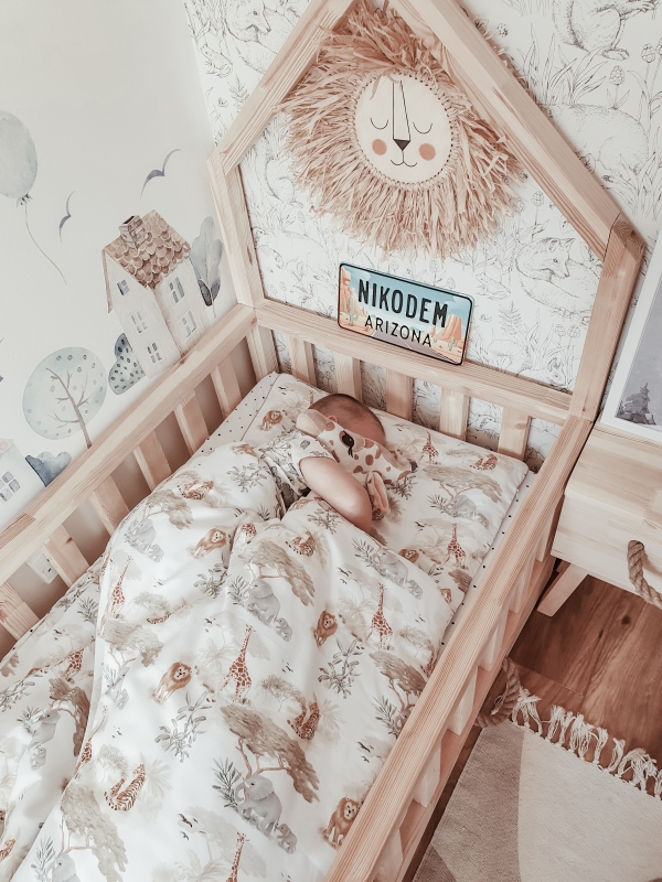 Wyjątkowe łóżko Mini Domek Scandi to połączenie funkcjonalności, bezpieczeństwa i niezrównanego uroku. Jego charakterystyczna konstrukcja z daszkiem i prostą ramą z drewna sosnowego tworzy harmonijną bazę dla dziecięcych snów i codziennych zabaw.